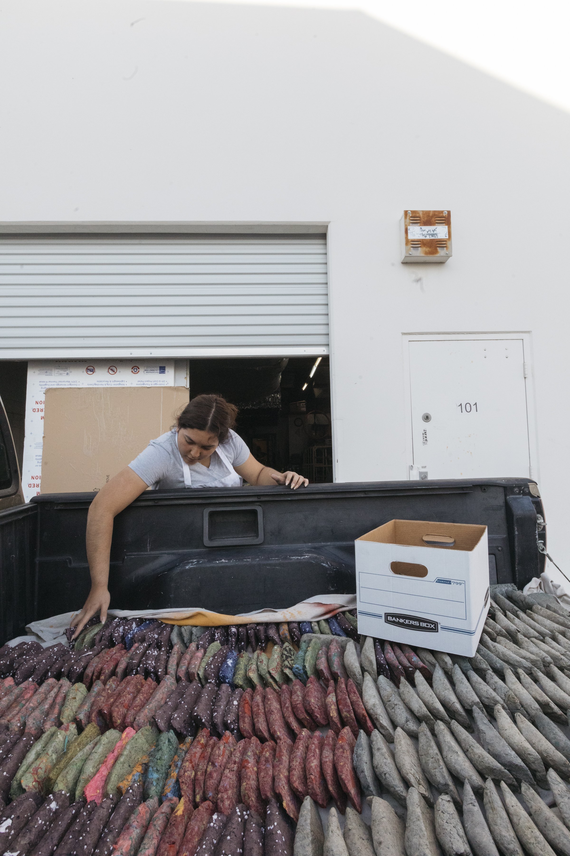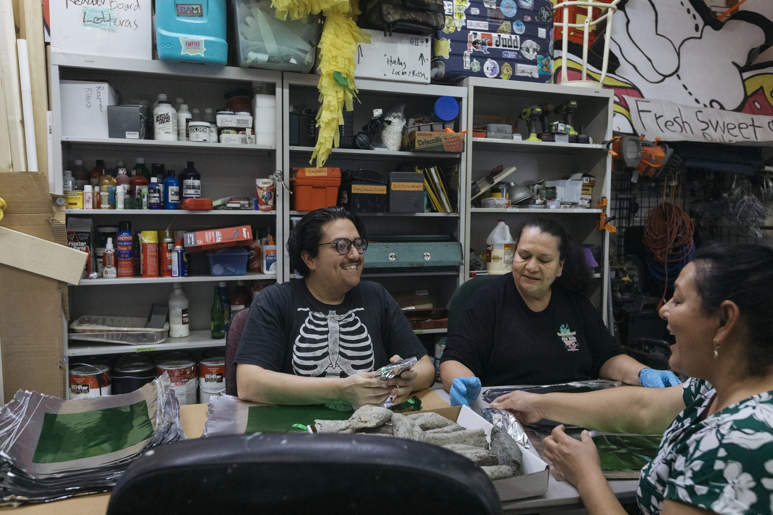 The artists of Los Encuentros are dedicated to community collaboration and the representation of Latinx culture to confront the accessibility of art spaces, colonial art histories, the conditions of labor, and lived experience. Together, their works explore larger societal truths and complexities while responding to the experiences of the people and places they engage with and depict. Marfa’s proximity to Mexico and the borders—political, cultural, artistic—that intersect in a space like Ballroom Marfa provide a pivotal context for Los Encuentros.