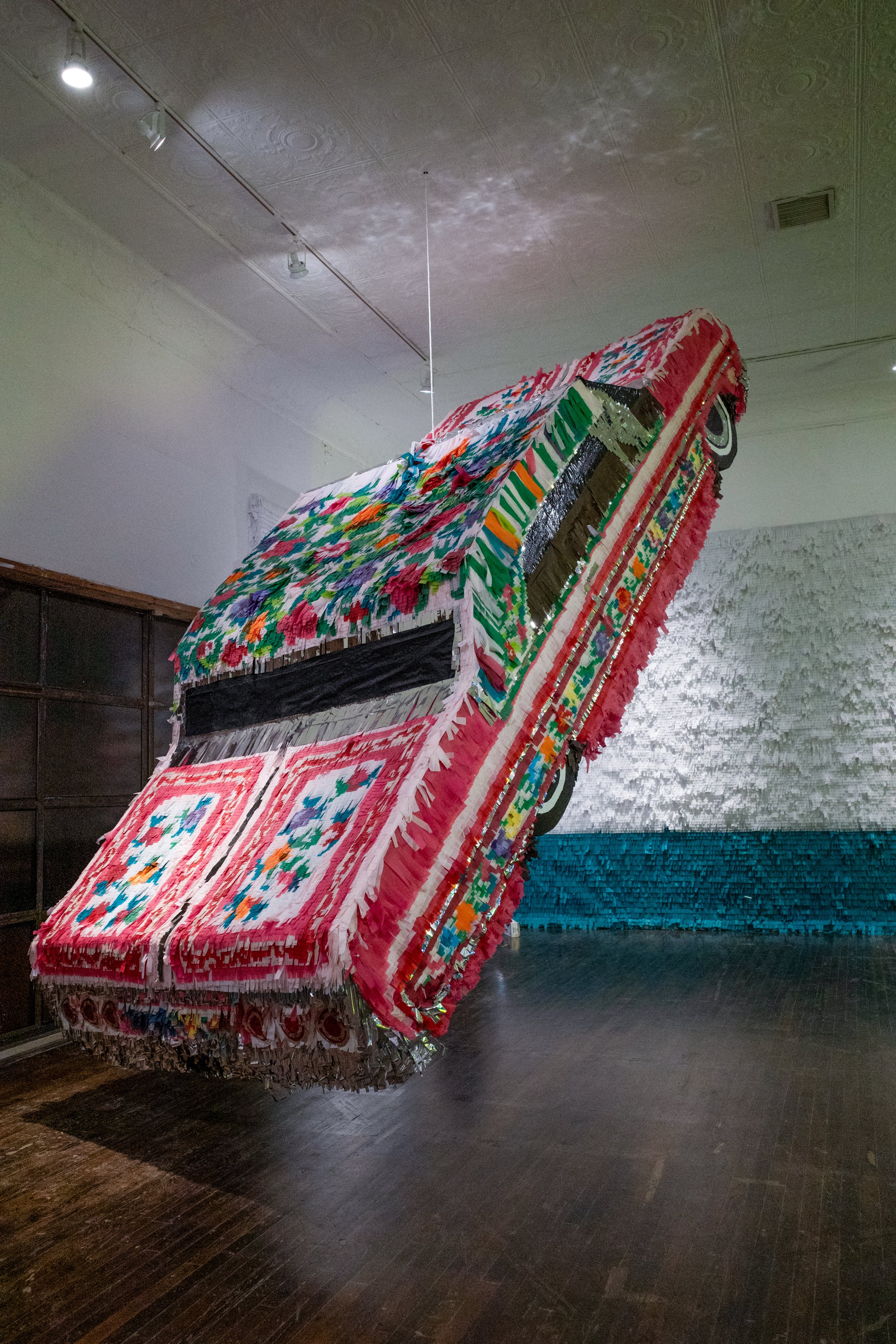 The exhibition’s five artists work in converging visual languages, combining elements of painting, sculpture, and installation. This hybrid approach invites viewers to reconsider traditional artistic boundaries and engage with both historical and contemporary artistic practices. The artists’ welcoming and seductive materials create encounters that feel personal, inclusive, and resonant with their own experiences while also challenging art world paradigms and confronting issues of class, borders, and culture head on with humor, reverence and pathos.
