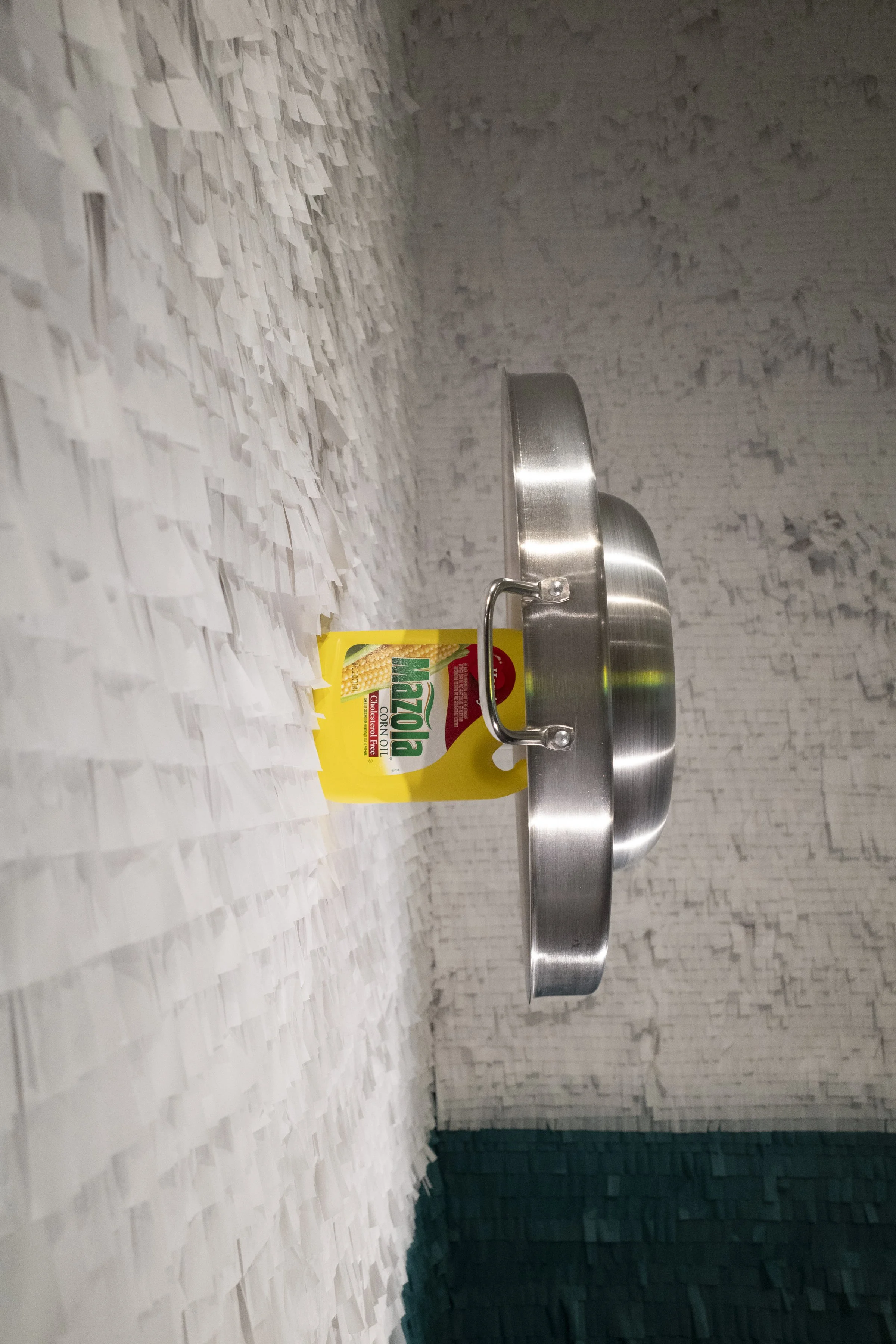 Found object, corn oil and ink, 2025